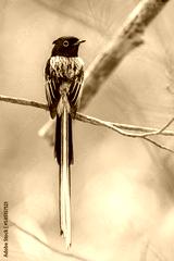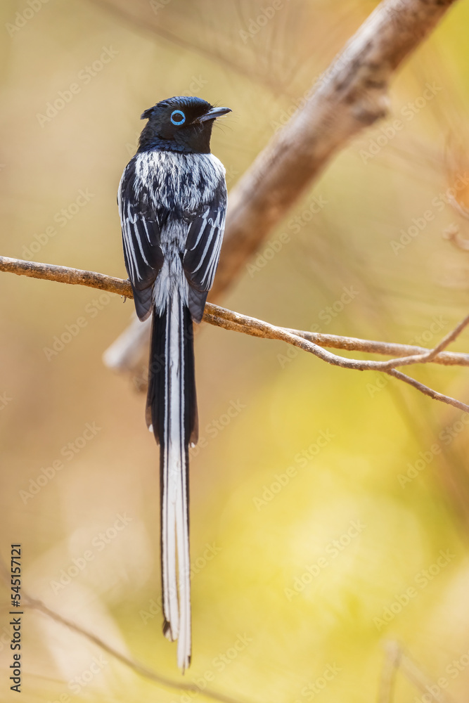 Madagascar Paradise-flycatcher - Terpsiphone mutata, Madagascar. Beautiful perching bird with extremely long tail long Madagascar forests, bushes and gardens.