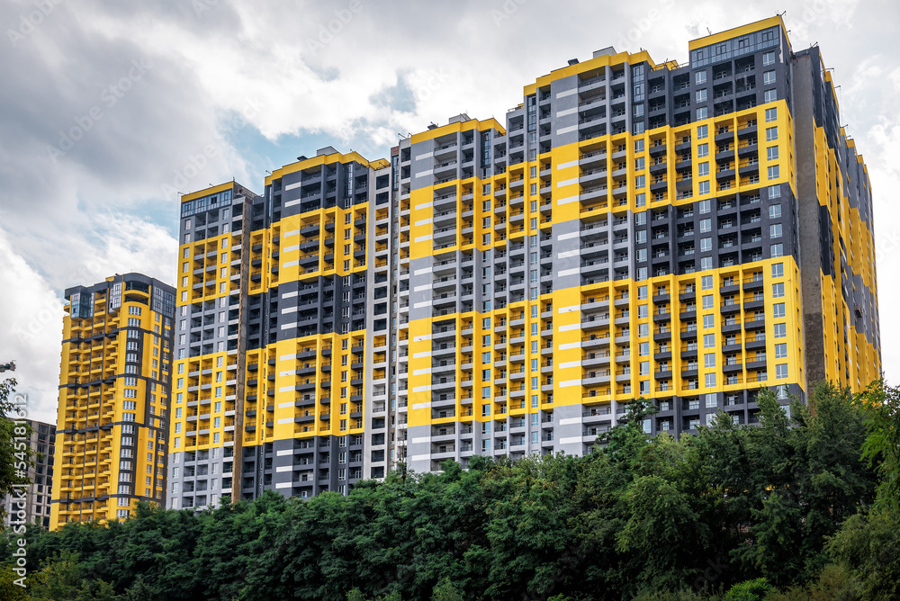 New multistorey residential apartment building. Modern house. Contemporary architecture facade exterior