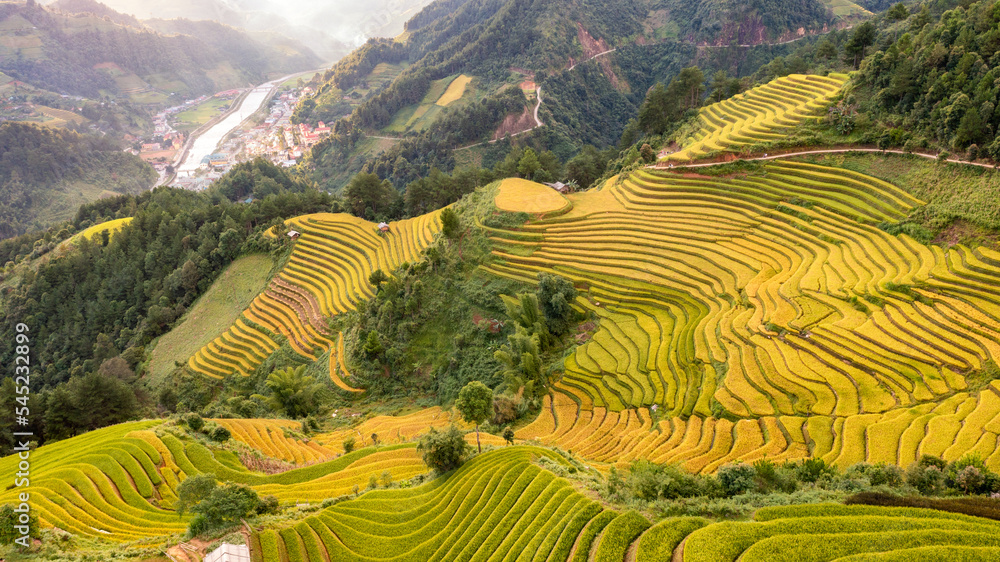 Rice fields on terraced prepare the harvest at Northwest Vietnam.
