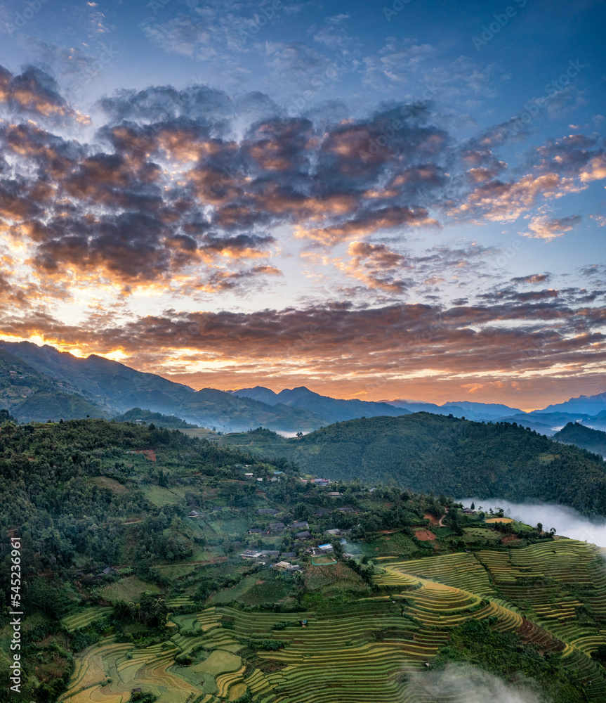 Rice fields on terraced prepare the harvest at Northwest Vietnam.