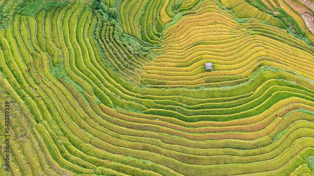 Rice fields on terraced prepare the harvest at Northwest Vietnam.