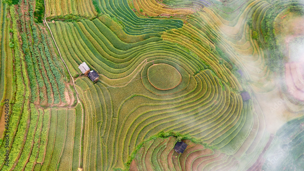Rice fields on terraced prepare the harvest at Northwest Vietnam.