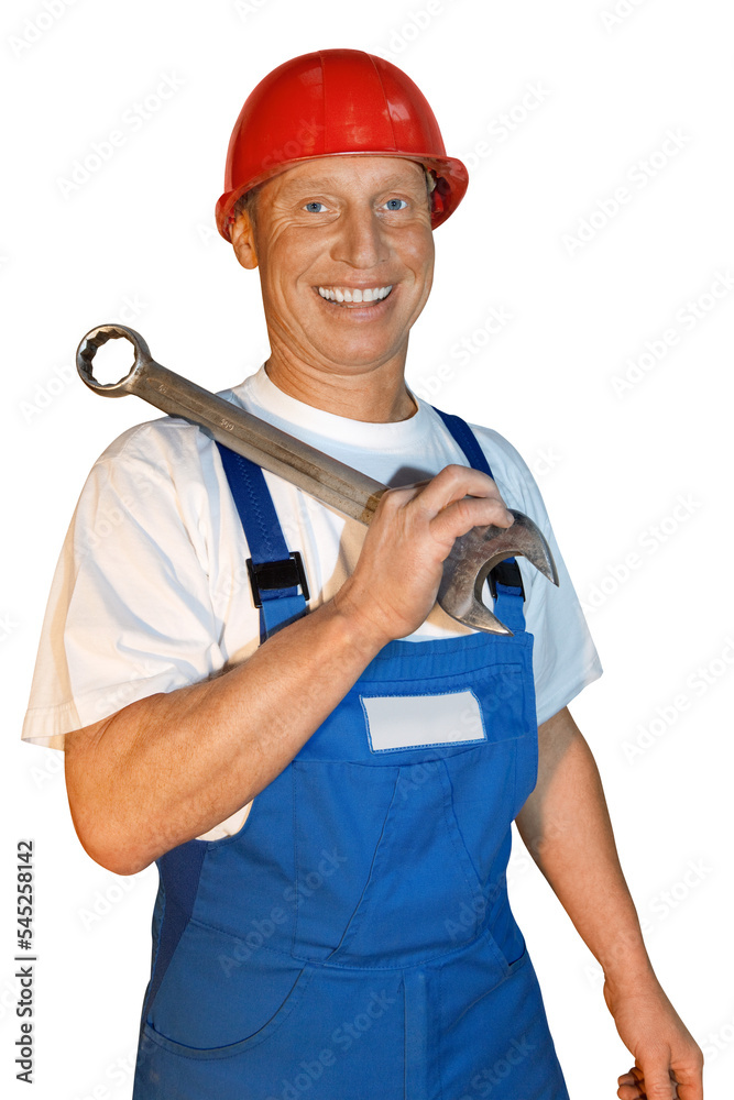 Craftsman series: sympathetic craftsman holding a large spanner.