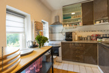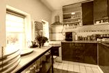 Kitchen interior with furniture and appliances