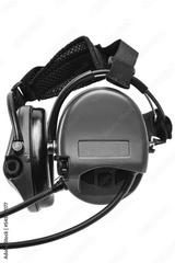 Protective headphones on a white. Safety equipment. Headphones for noise reduction. Light back.