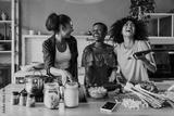 Three mixed race hispanic and black women bonding at home - Multiracial group of happy young female adults spending time together and having fun