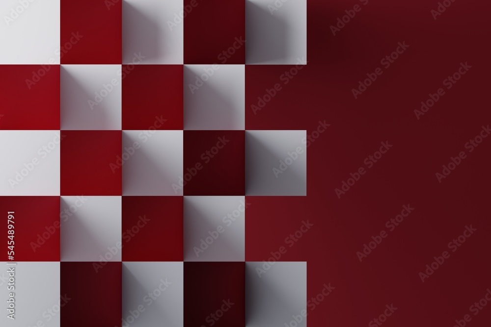 Abstract pattern from white squares on a red background. The concept of using textures, mockup. 3d rendering, 3d illustration.