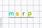 Colorful tile letter in word MSRP (Abbreviation of manufacturer's suggested retail price) on white grid background