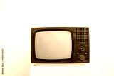 Classic, vintage old television with blank screen in white wall background, technology retro tv