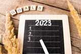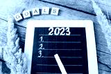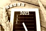 Abstract background with shadow and reflection of the numbers 2023 on the wall.
