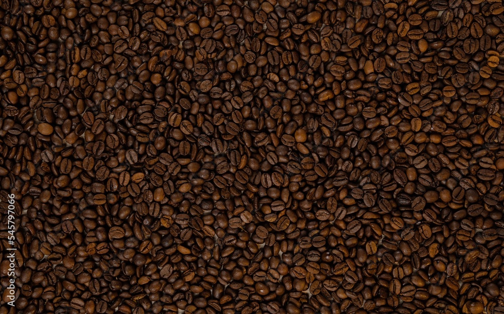 Closeup of brown roasted coffee beans background