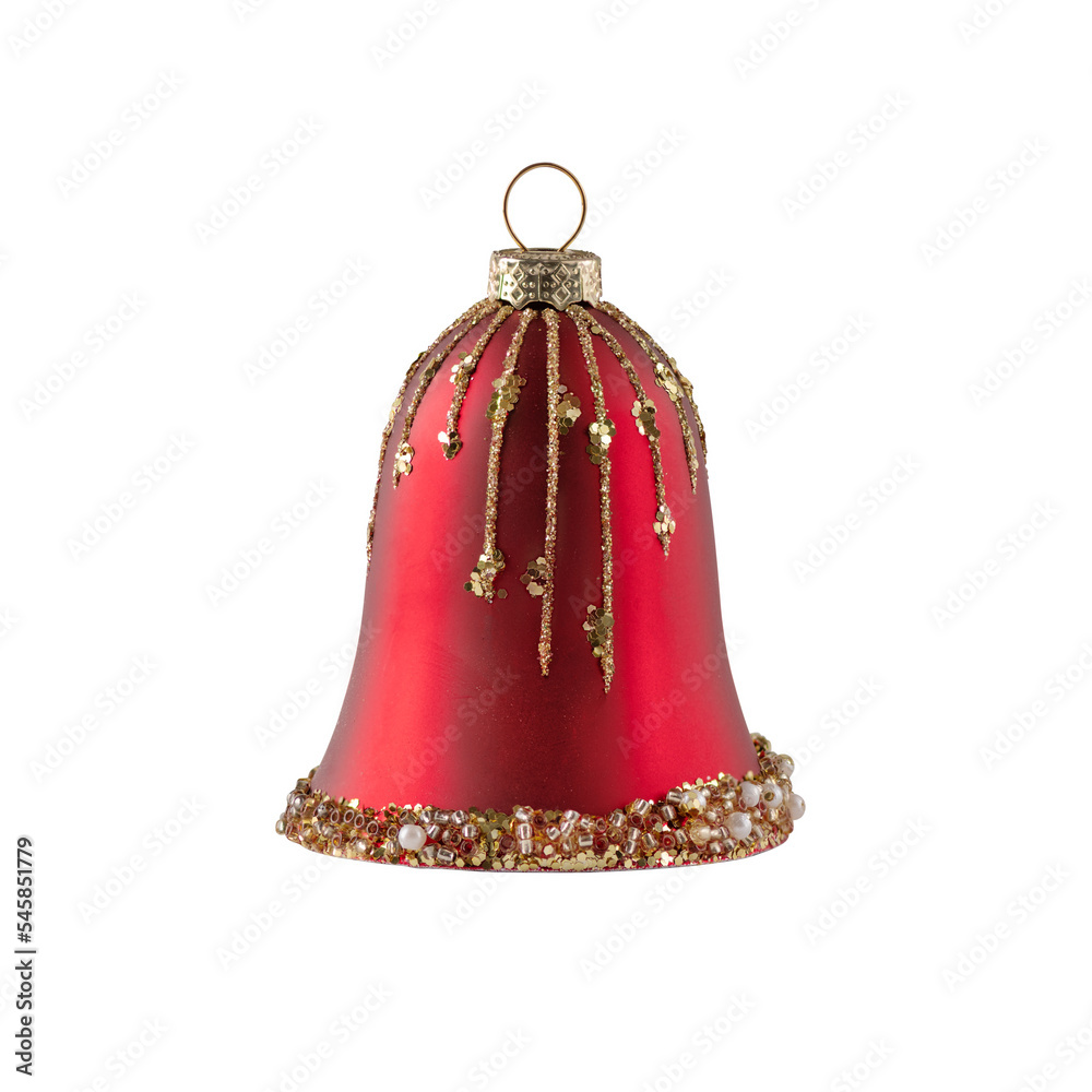 Red Christmas ornament isolated on white background. Christmas bell for design.