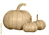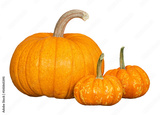 Organic Sugar Pie Pumpkin, an ideal pumpkin for holiday baking and cooking, and two mini pumpkins. Isolated on transparent background.