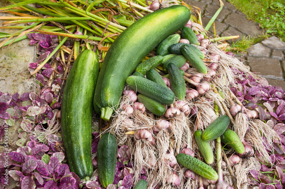 cucumbers, zucchini and garlic crops