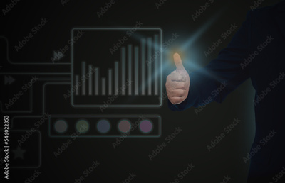 Businessman hand thumbs up to growth success finance business chart,graph investment diagram on analysis stock market .