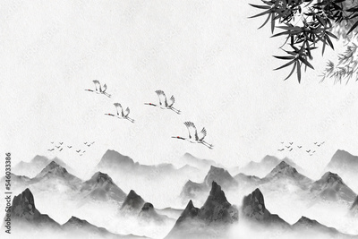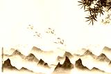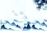 China's traditional Chinese painting ink in the mountains. hand drawn watercolor mountain landscape. Watercolor forest winter landscapes.