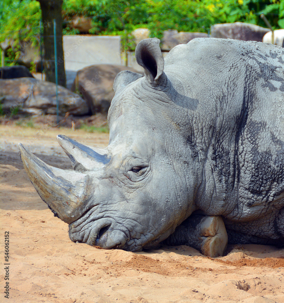 The white rhinoceros or square-lipped rhinoceros is the largest extant species of rhinoceros. It has a wide mouth used for grazing and is the most social of all rhino species