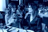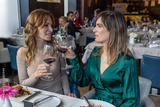 Girlfriends toasting with wine in the restaurant