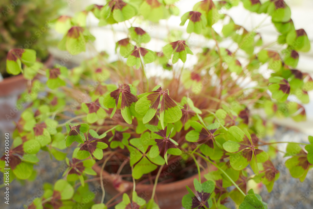 Green flowers oxalis tetraphylla iron cross oxalidaceae in the garden. Summer and spring time