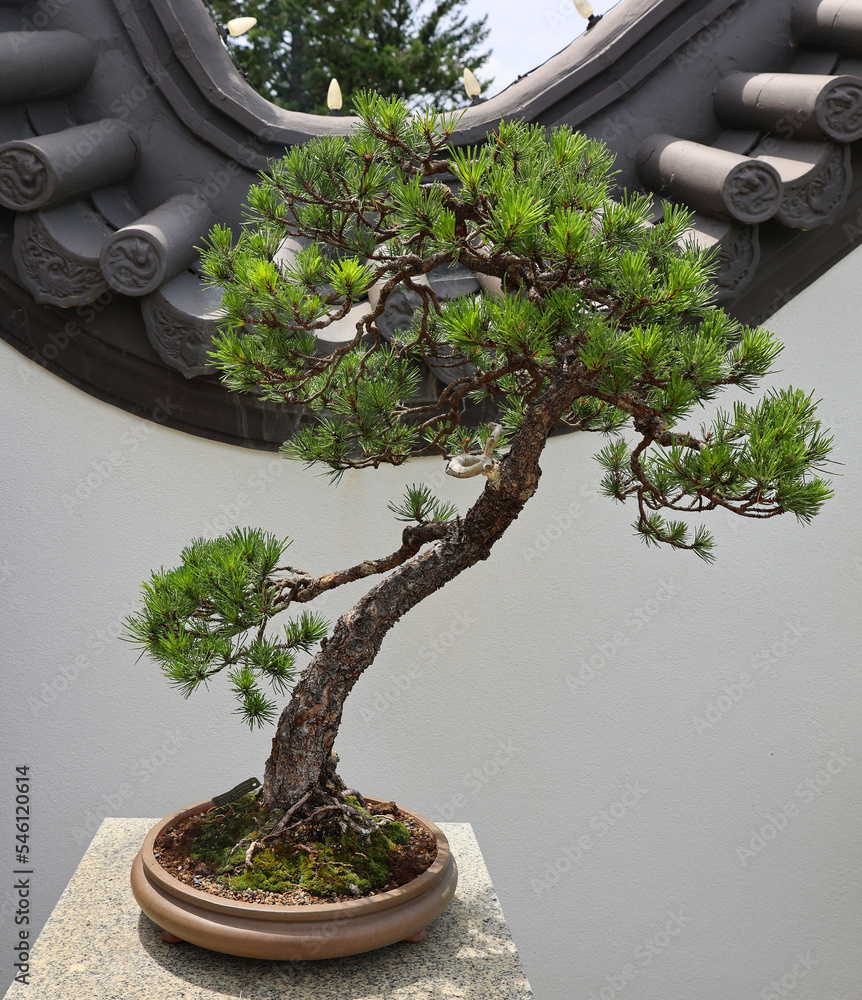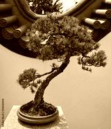 Bonsai. It is an Asian art form using cultivation techniques to produce small trees in containers that mimic the shape and scale of full size trees