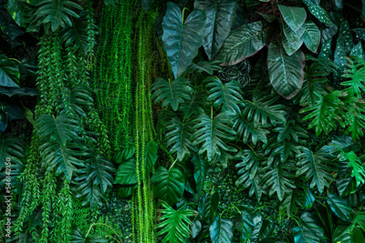 Full Frame of Green Leaves Pattern Background, Nature Lush Foliage Leaf Texture, tropical leaf