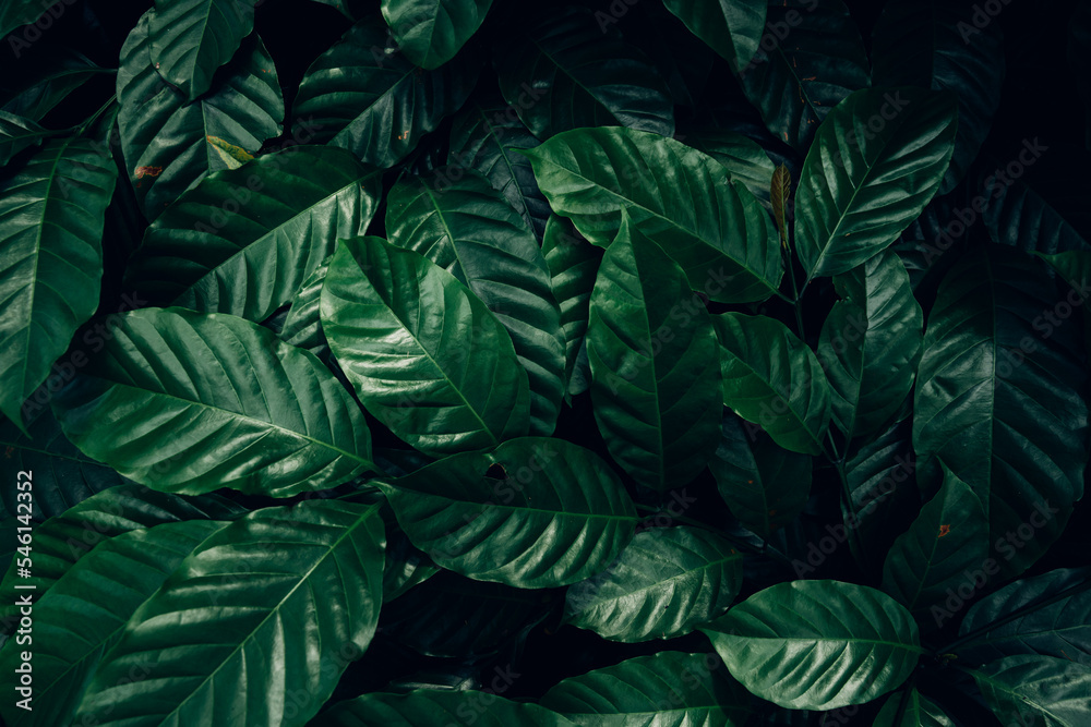 Full Frame of Green Leaves Pattern Background, Nature Lush Foliage Leaf Texture, tropical leaf
