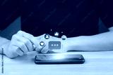 Social media, shopping and digital online concepts, men using smartphones. Holiday living and social work from home ideas