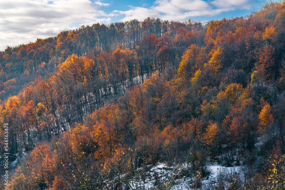 Dense autumn mountain deciduous forest
