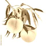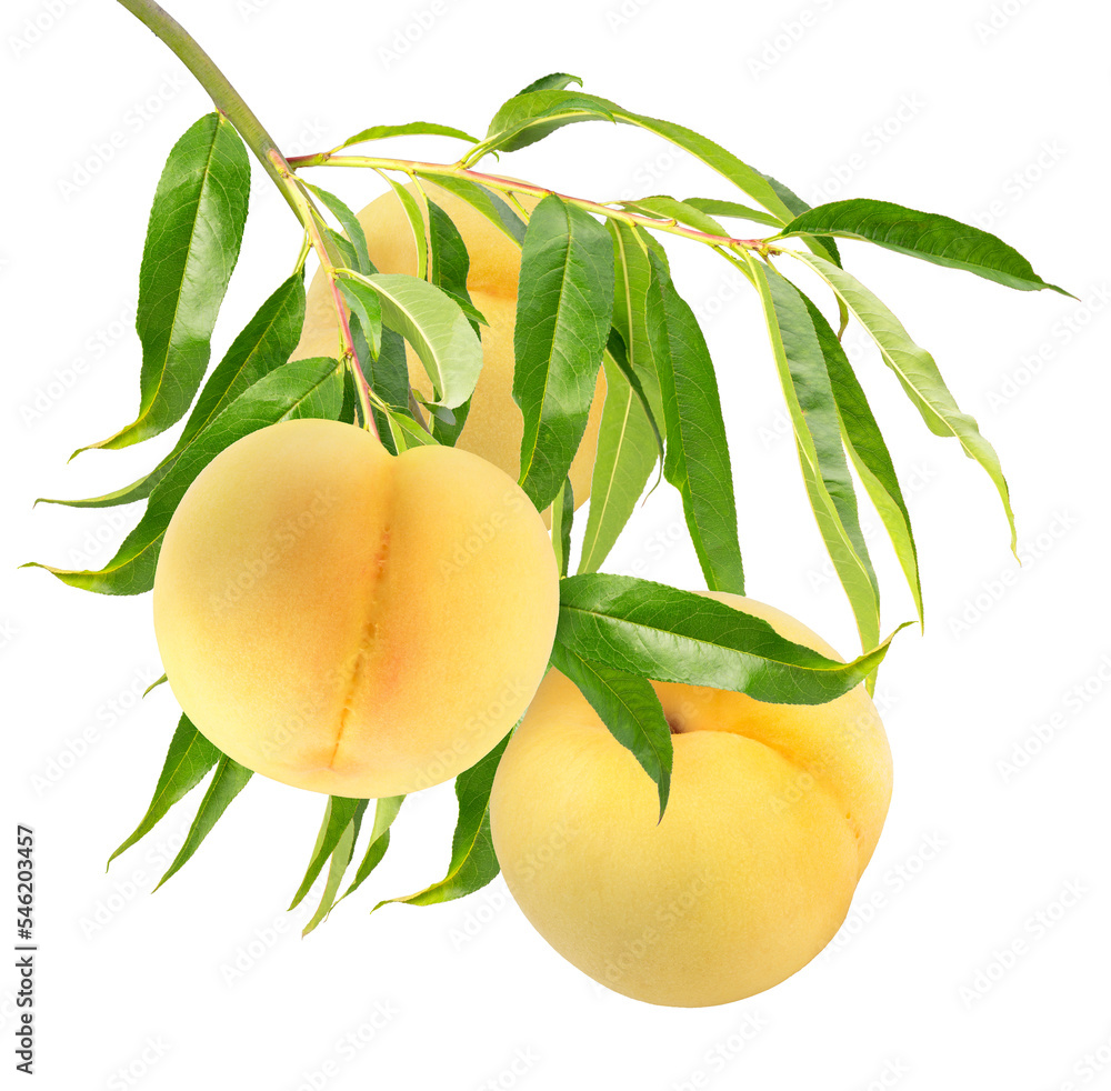 Bunch of Yellow Peach fruit with leaf on green natural garden Blur background, Sweet Yellow Peach fruit on a branch over Blur background PNG File
