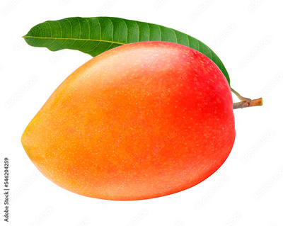 Red Mango fruit with leaf isolated on white background, Fresh Mango fruit on White Background PNG File.