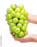 Woman Hand holding Green grape on white background, Shine Muscat Grape on white PNG File.
