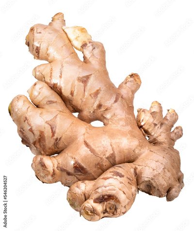 Fresh ginger with green leaves on white background, Ginger root on white background PNG File.