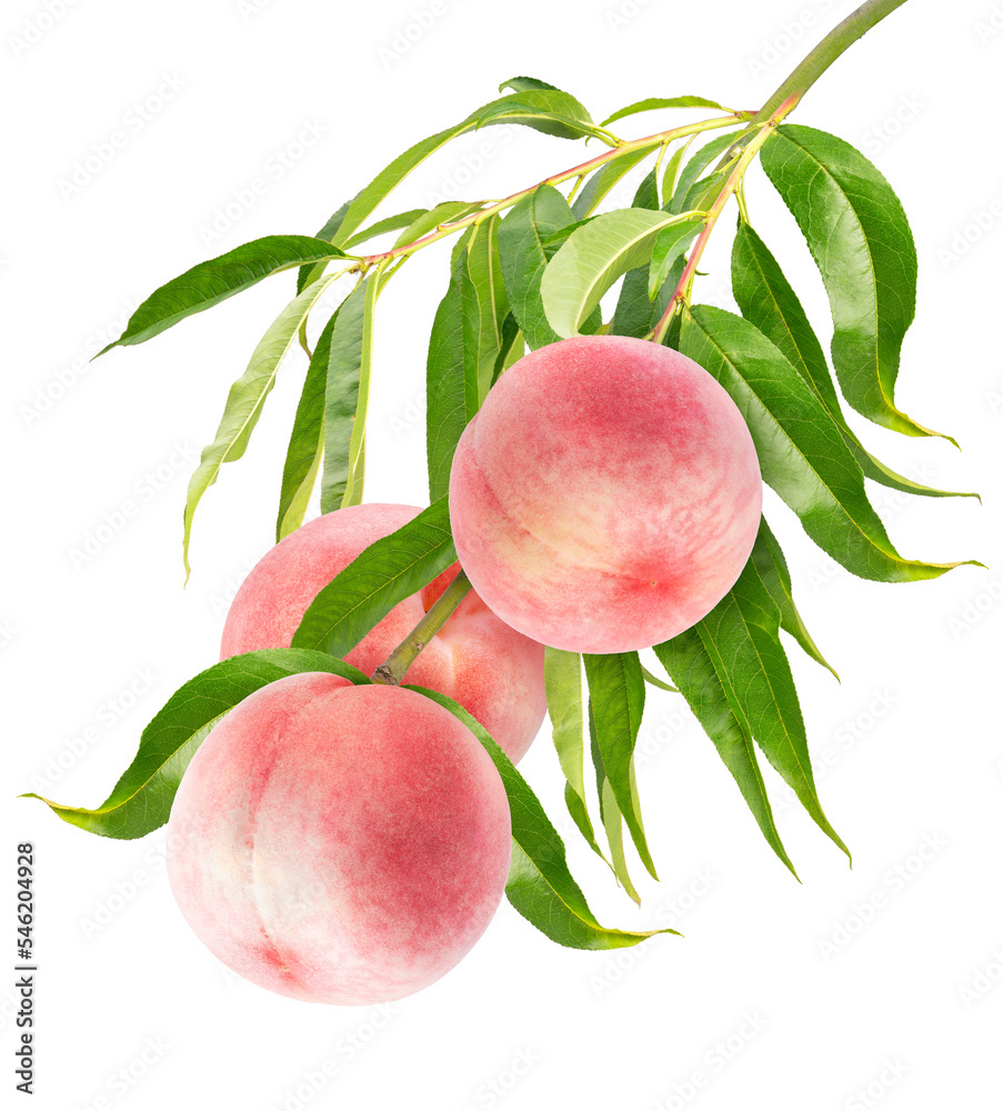 Bunch of White Peach fruit with leaf on green natural garden Blur background, Sweet Pink Peach fruit on a branch over Blur background PNG File