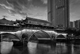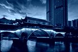 Famous landmark of Chengdu - Anshun bridge over Jin River illuminated at night, Chengdue, Sichuan , China