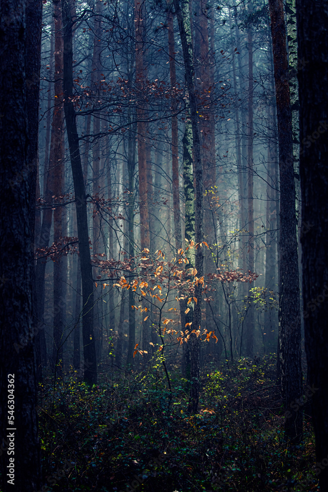 misty autumn forest in the morning
