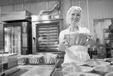 Bäckerin Lehrling in der Ausbildung backt Gugelhupf