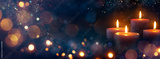 Advent Candles Burning In The Dark With Abstract Defocused Lights