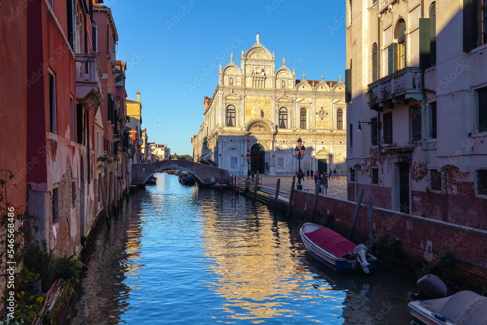 Marble facade of the Hospital of Saints Giovanni and Paolo. Venice