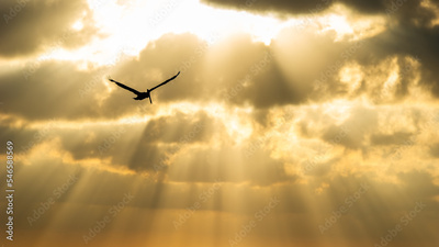 Bird Sunset Silhouette Flying Sun Rays Inspirational Faith 16.9 Image