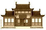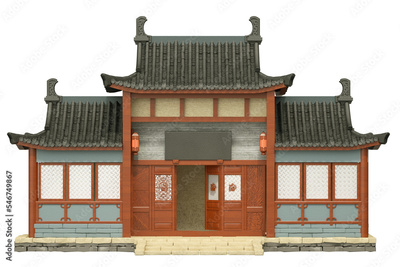 Traditional chinese buildings, asian architecture chinatown. Chinese townscape with pagoda, temple, house. China town city lanmarks landscape cartoon illustration design element