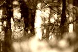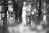 Lynx hidden in the forest with backlight between the trees. Predator in his natural habitat.