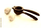 Lemon juicer and lemons on a white background