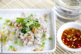 soft-boiled rice pork with Glass of water and fish sauce