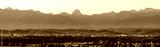 Panoramic view of Pau and the Pyrenees (Pic du Midi d'Ossau) during automn season and at sunrise. Béarn / France
