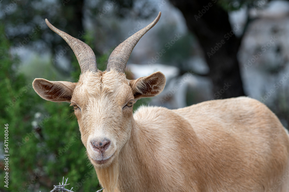 Isolated Brown Goat portrait looking at the camera