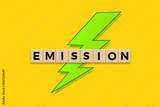 Zero Emission Banner. Letter Tiles on Yellow Background. Minimal Aesthetics.