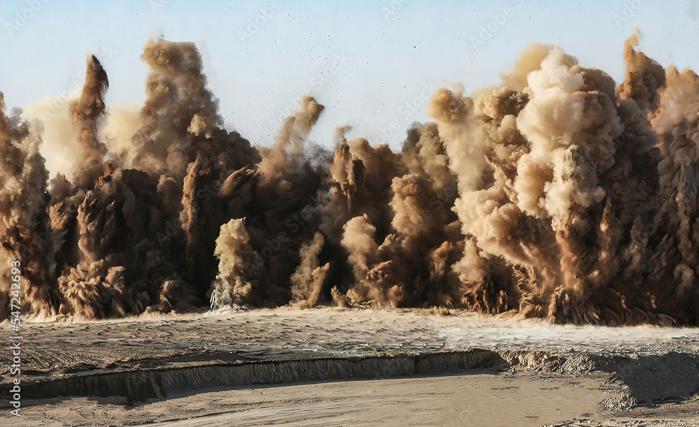Dust clouds due to detonator blast on the mining site in the Oman