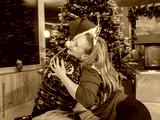 Beautiful couple in love embraces after the engagement under Christmas tree
