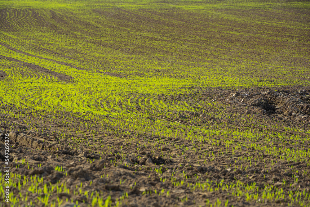 wschodzące zielone zboże na polu