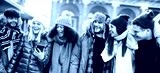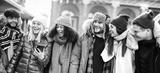 Happy students group walking at european city on sunny day - Lifestyle concept with multiracial young people wearing winter clothes having fun together